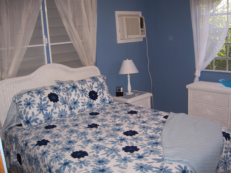 The bright and airy 2nd bedroom has a Queen size bed which sleeps two. Air conditioning and a ceiling fan are installed. It is a cute room which gets plenty of natural light.