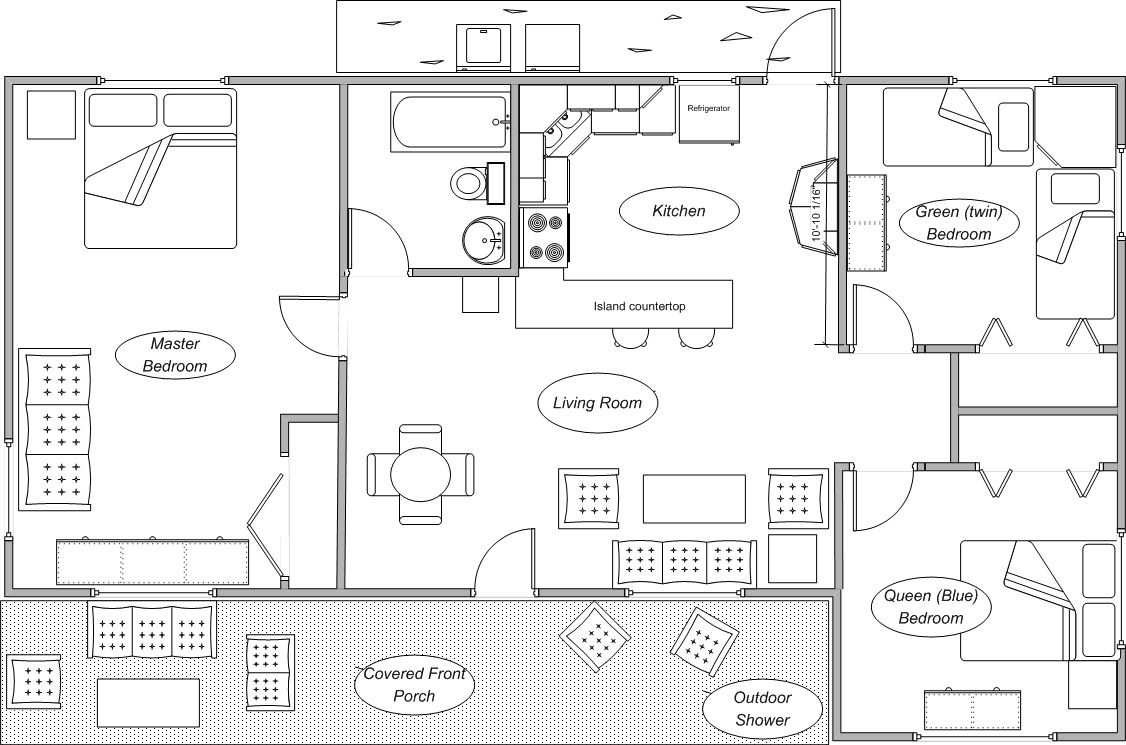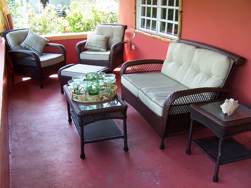 One of our favorite places to relax after a day at the beach is the spacious front porch. We have a full set of comfortable lounge furniture, perfect for playing games and sipping that well deserved Pina Colada. We also installed an outdoor shower which is wonderful when returning from the beach to wash off the salt and sand.